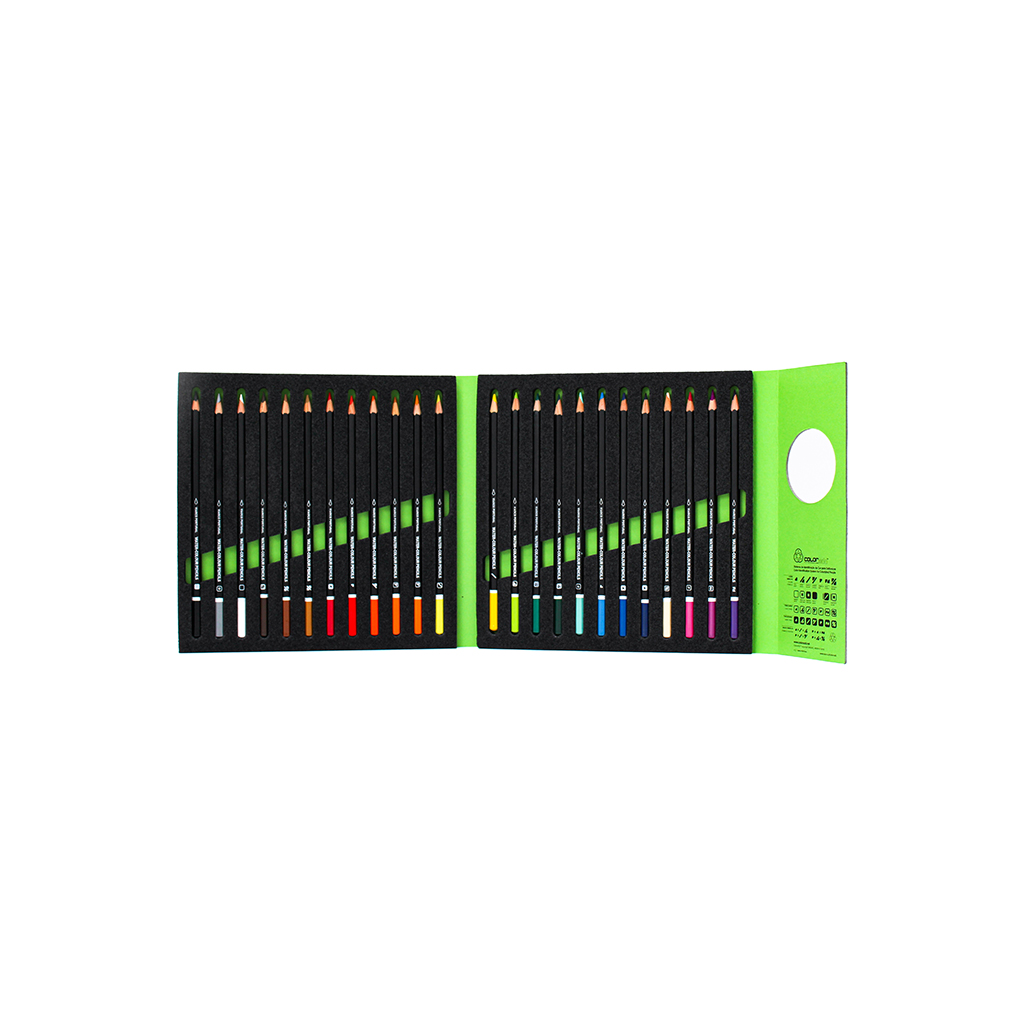 Viarco Silkscreen Series é um conjunto de 24 lápis de cor aguareláveis de qualidade profissional, muito macios, com cores brilhantes e altas propriedades de solubilidade.