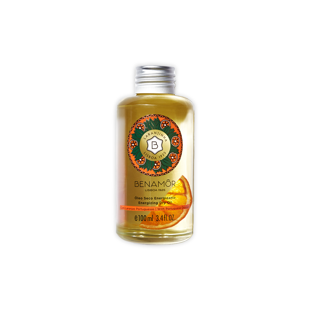 O novo óleo seco Laranjinha nasce da aliança única de laranjas portuguesas cuidadosamente colhidas à mão com 3 preciosos óleos naturais: argão, girassol e amêndoas doces. A nossa receita secreta para um rosto, corpo e cabelo sedosos. Umas gotas deste óleo energizante deixarão a sua pele radiante e perfumada… instantaneamente!