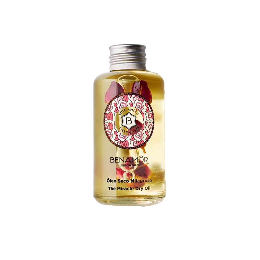 O óleo seco Rose Amélie nasce da aliança única de botões de rosa cuidadosamente colhidos à mão com 3 preciosos óleos naturais: argão, girassol e amêndoas doces. A nossa receita secreta para um rosto, corpo e cabelo sedosos. Umas gotas deste óleo nutritivo e delicadamente perfumado deixarão a sua pele saciada e radiante… instantaneamente! Para todos os tipos de pele.