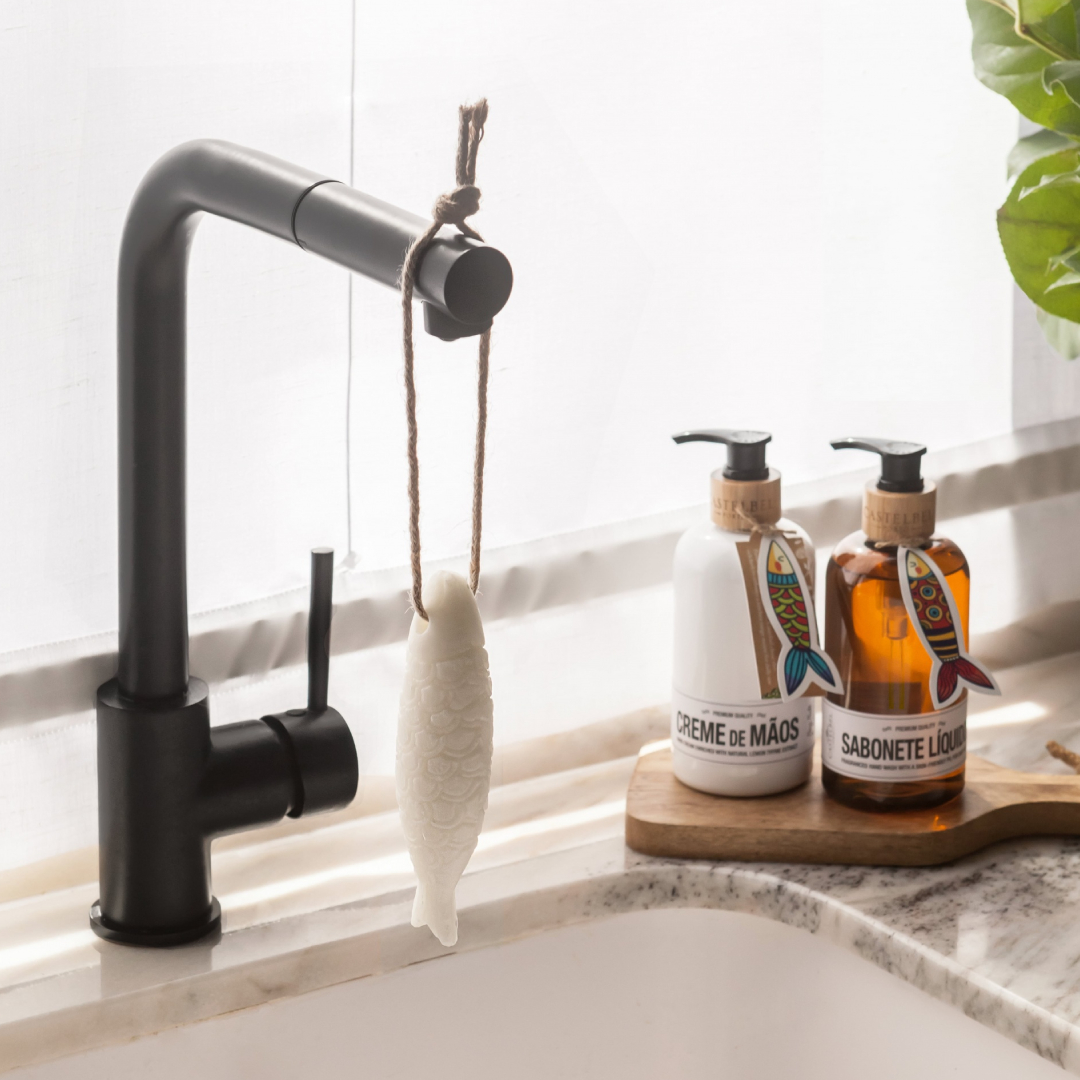 Redescubra a diversão na cozinha com a coleção Castelbel Sardinha e renda-se ao seu perfume a sais marinhos e limão. Composta por um sabonete que remove os cheiros das mãos, uma vela que ajuda a eliminar os maus odores do seu espaço e um pano de cozinha para manter sempre tudo a brilhar, esta é uma coleção essencial na sua cozinha. Deixe-se encantar por esta divertida coleção… porque a sua cozinha é uma fonte de felicidade!