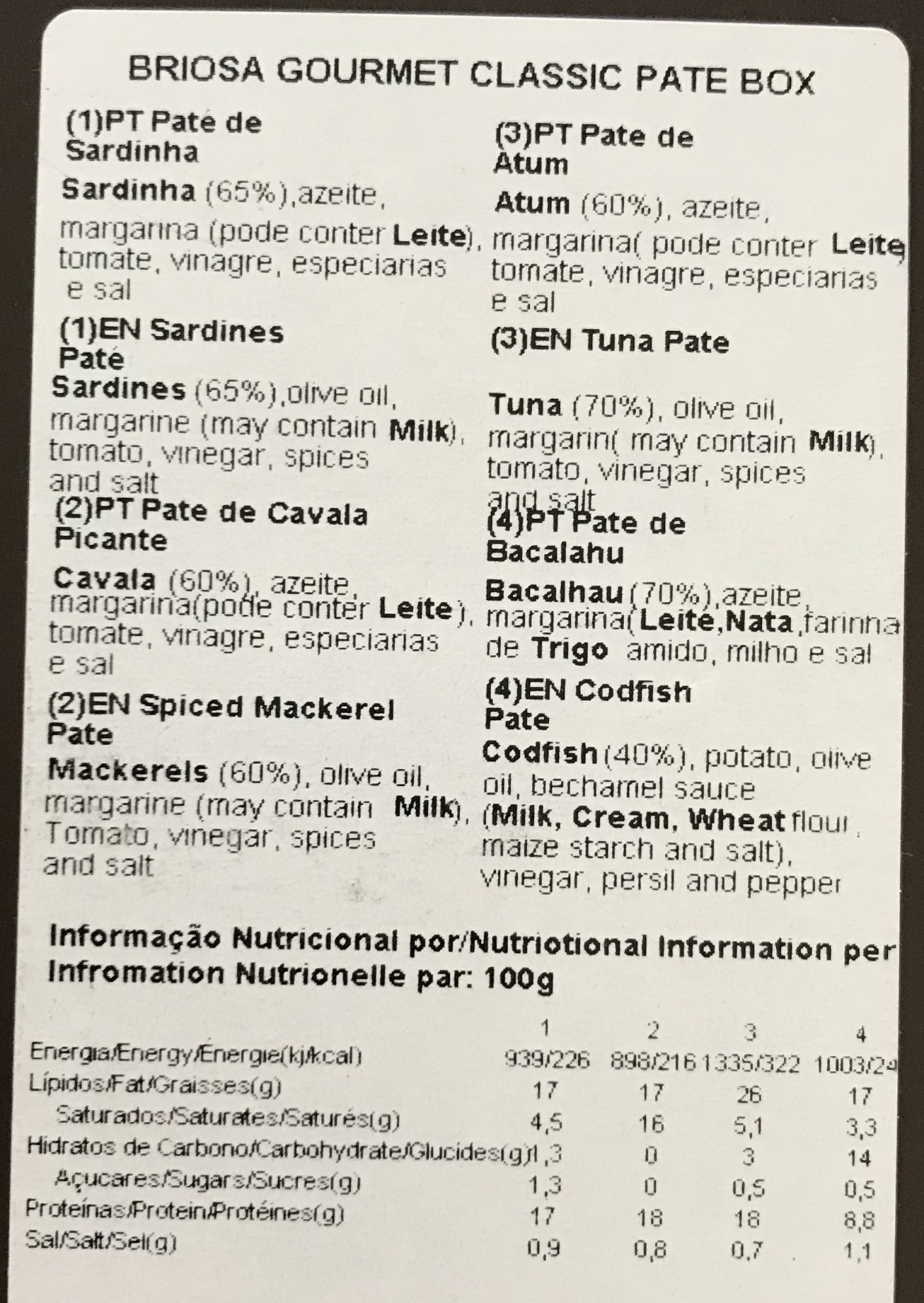 Ingredientes: Bacalhau (70%), azeite, margarina, Leite, Nata, farinha de Trigo, amido, milho e sal.