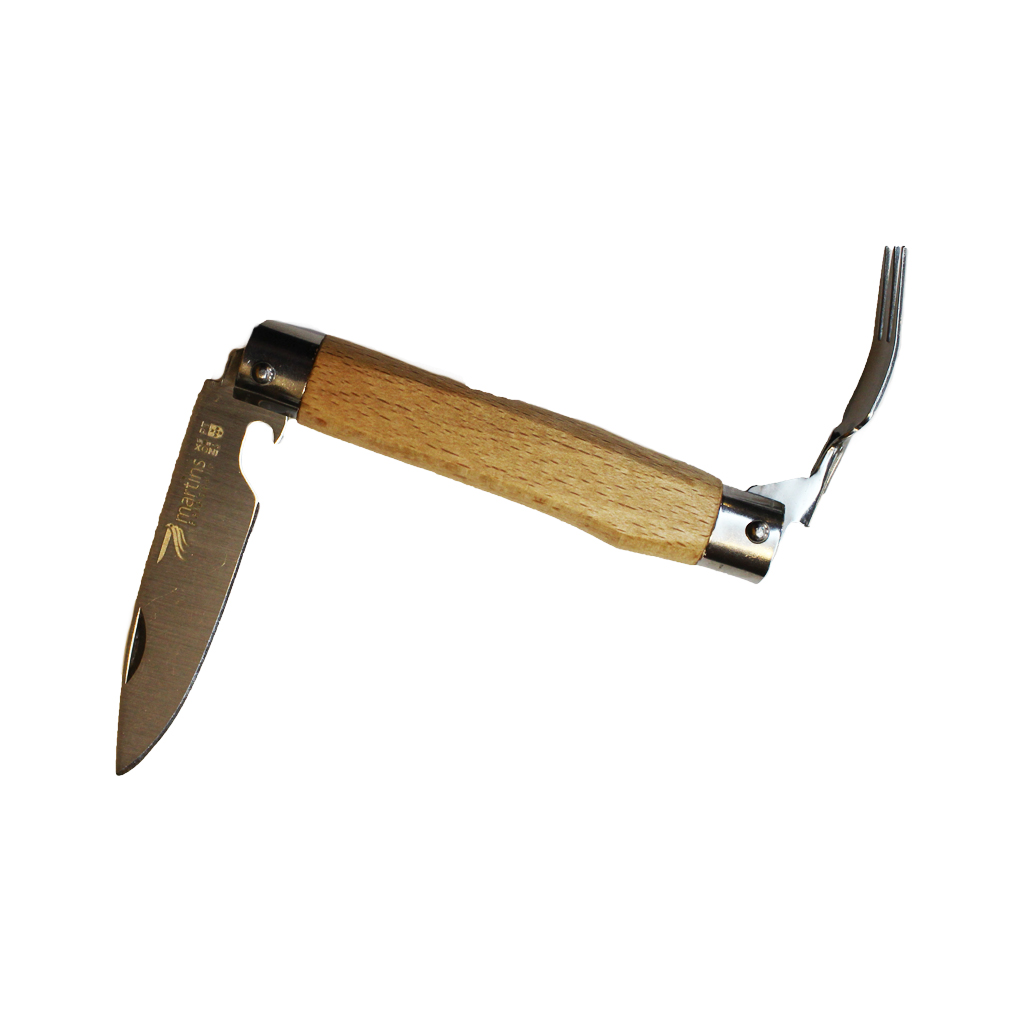 Navalha tradicional, de origem agrícola com lâmina em aço inox [420] e garfo articulado. Punho em madeira de Faia.