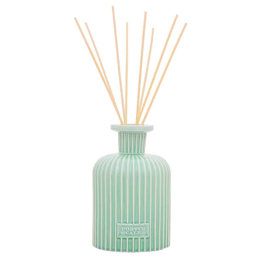 - 250ml (Este difusor é feito de cerâmica verde-água e decorado com um elegante efeito canelado, criado artesanalmente por mestres ceramistas através de métodos e técnicas tradicionais, que remete para o encanto apaziguante de uma floresta de bambu, com detalhes singulares e subtis variações de forma e cor, tão únicas como quem as recebe.)