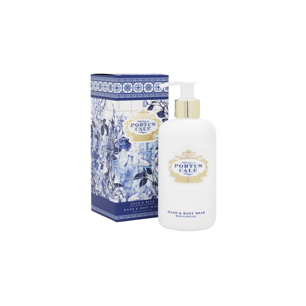 De espuma luxuriante e aroma a Pimenta Rosa e Jasmim, o Gel Para Mãos e Corpo Portus Cale Gold & Blue complementa a Loção Corporal e Creme de Mãos desta coleção no aroma e na hidratação.