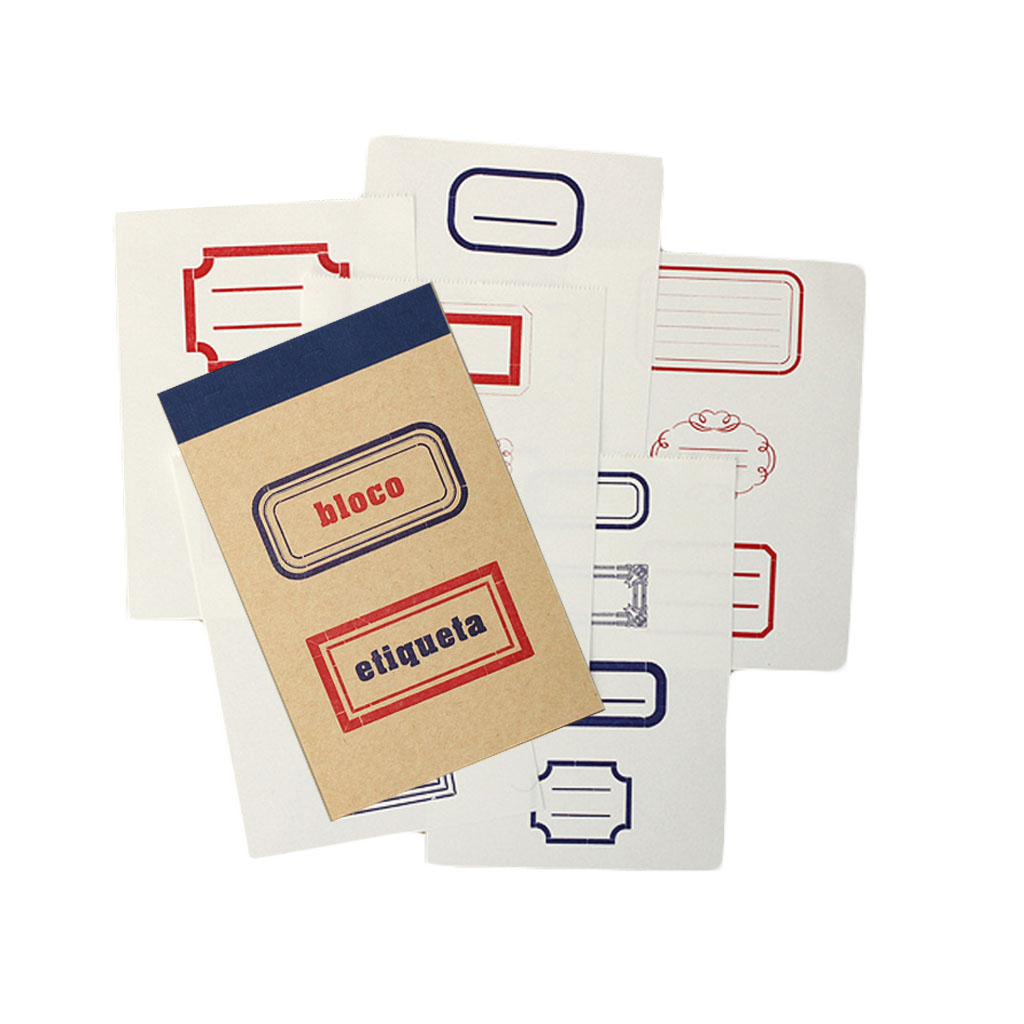 Sem etiqueta não vamos a lado nenhum, e este Bloco vem com 108 etiquetas impressas em tipografia a vermelho e a azul.