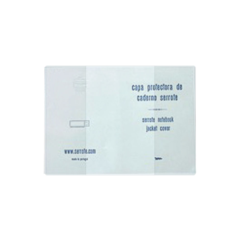 Capa protectora de cadernos Serrote. Fabricada em PVC Cristal com abas interiores e impressão a seco.