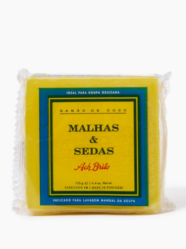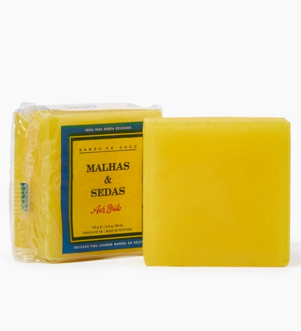 • Este sabão é produzido tradicionalmente em Portugal; • Indicado para a lavagem manual da roupa, incluindo peças delicadas; • Com uma textura suave e uma formulação à base de coco, protege a roupa e as mãos; • Malhas & Sedas é uma marca registada em 1953.