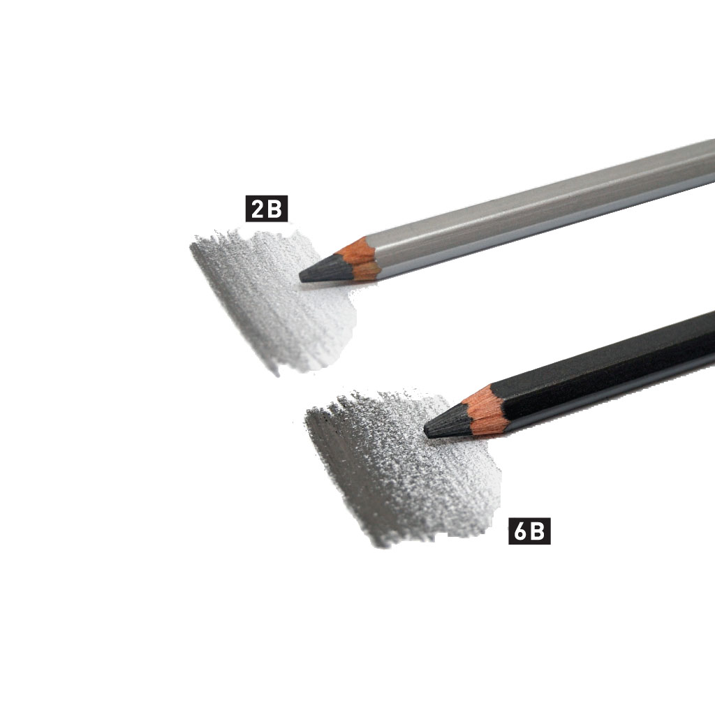 Lápis de Grafite Aguareláveis extremamente macio com mina larga 5mm, permitindo um traço diferente e uma extensa gama de cinzentos.